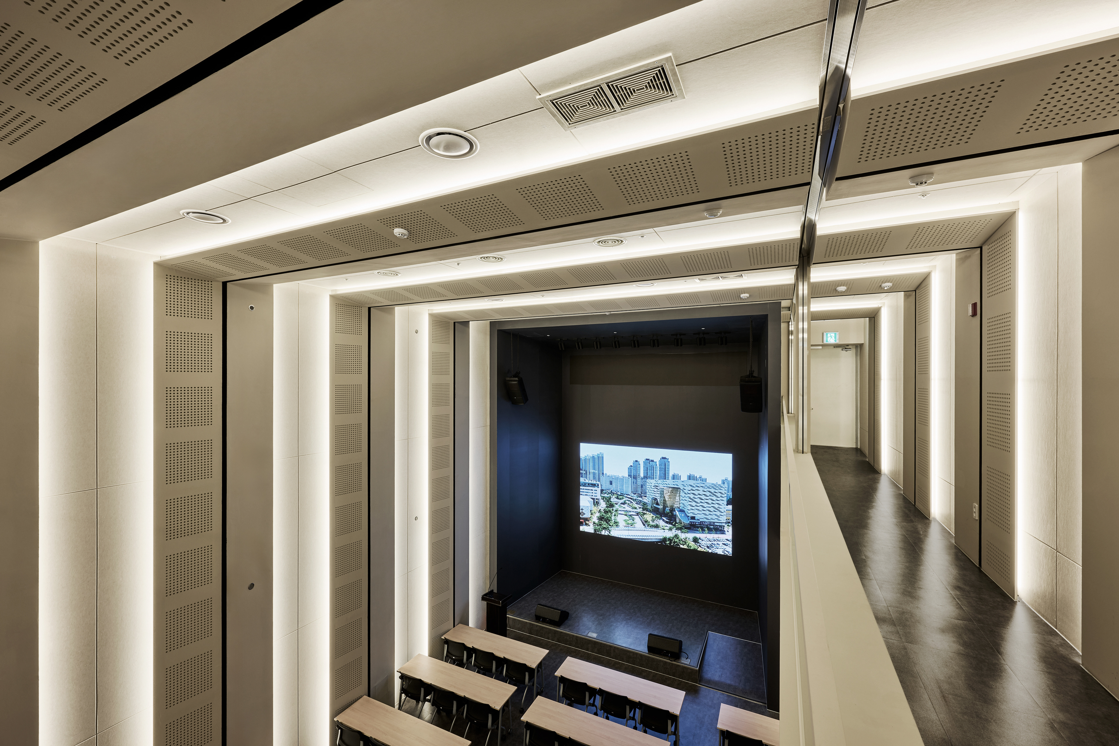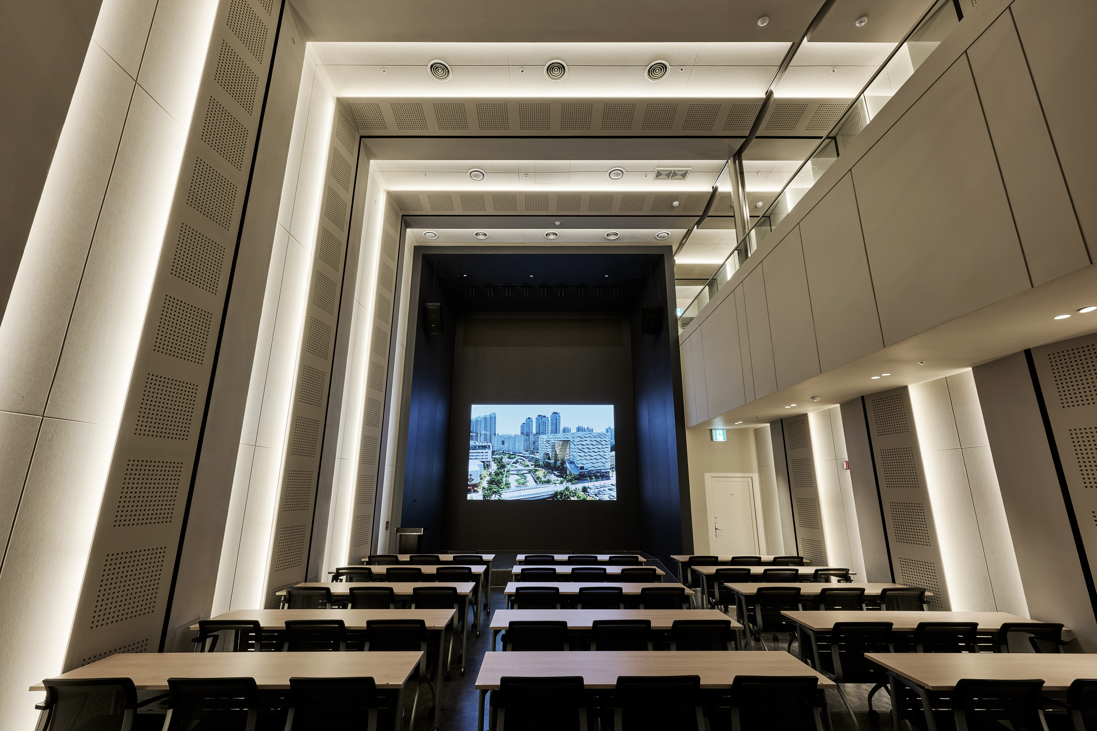지하 강당, 업무 공간, 역사관, 촬영실, 대회의실, 임원실 등 총 7층으로 구성된